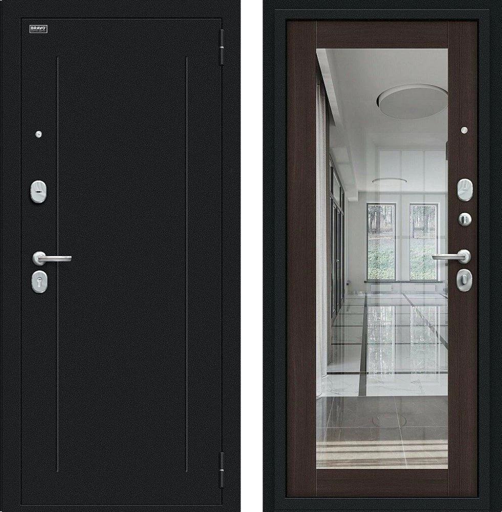Надежная входная Дверь Браво Флэш Букле черное/Wenge Veralinga премиум класса по цене 32 397 руб. Большая толщина стали защитит от проникновения в ваш дом, квартиру или коттедж. Используется очень качественная фурнитура: замки, цилиндры, ручки, защелки. Покрытие и отделка двери изготовлено под внимательным контролем производителя. Дверь имеет долгий срок службы и гарантию.
