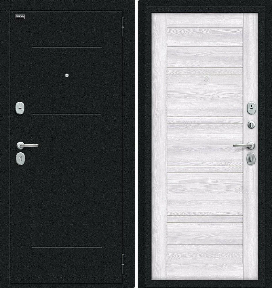 Надежная входная Дверь Браво Сити Kale Букле черное/Riviera Ice премиум класса по цене 34 947 руб. Большая толщина стали защитит от проникновения в ваш дом, квартиру или коттедж. Используется очень качественная фурнитура: замки, цилиндры, ручки, защелки. Покрытие и отделка двери изготовлено под внимательным контролем производителя. Дверь имеет долгий срок службы и гарантию.
